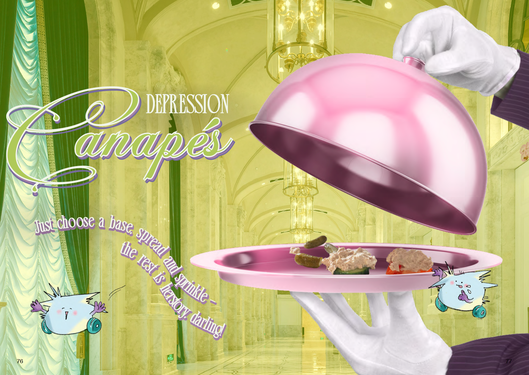 misery meals is a choose-your-own-adventure collection of recipes, art and resources by mad and disabled, queer and trans, global majority people world-over, to be used always, but especially when we’re feeling miserable. This is an intuitive guide for when we need to eat but aren’t sure exactly when or what or fucking how. Think of it as an anti-cookbook.