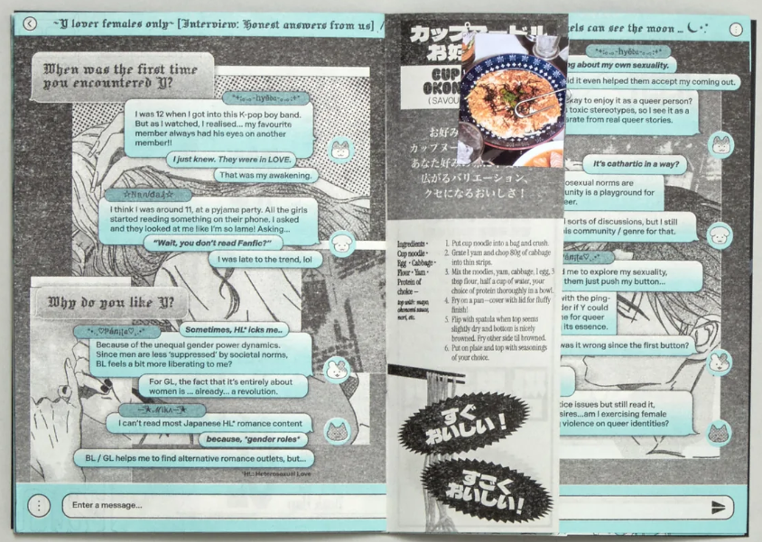 Continuing our zine series on food and personal experiences as queer ESEA (East / South East Asian) female immigrants, SPILLLL vol. 3 tries to untangles BL and GL’s spicy and raw discussions on gender, fetishism, desire, and queerness topped with our favourite INSTANT NOODLE recipes for you to snack on during the heated discussion.